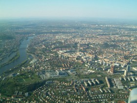 Cestujícím se během příblížení k dráze 31 ruzyňského letiště naskýtá nezapomenutelný pohled na Prahu