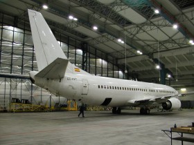 22.12.2004 - poslední Boeing 737 pro ČSA (bývalý Air Berlin a Air Europa) v hangáru po svém dodání do Prahy. Ještě se španělskou registrací původního dopravce