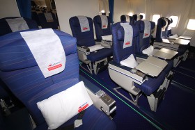 05.12. - Inside new Air France A380, upper deck economy cabin; on route AF006 CDG-JFK